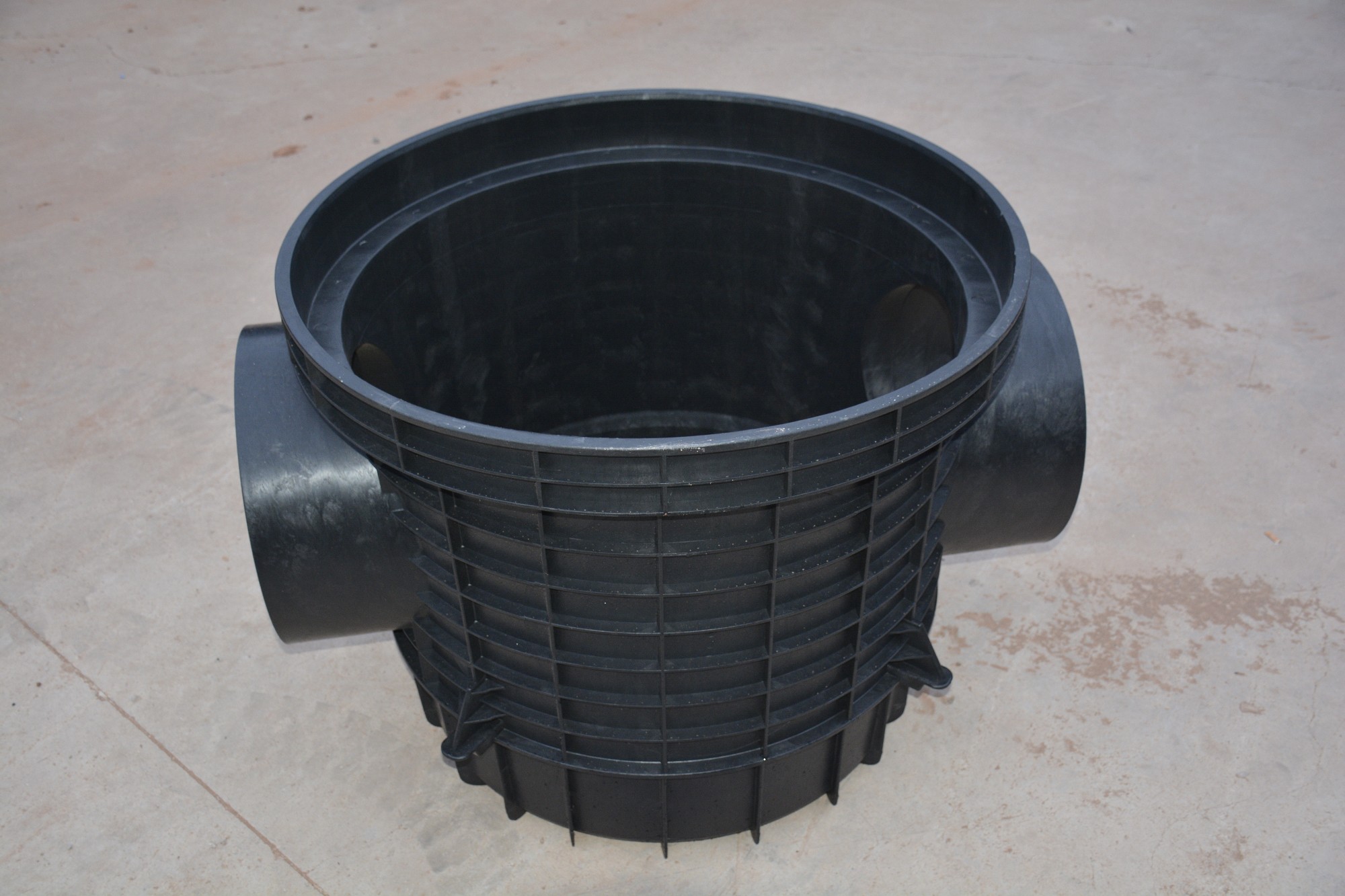 3、由于內(nèi)壁光滑,設(shè)有導(dǎo)流槽,有出色的排水性能,污物不易滯留。積水的可排放效率是傳統(tǒng)檢查井的1-3倍。